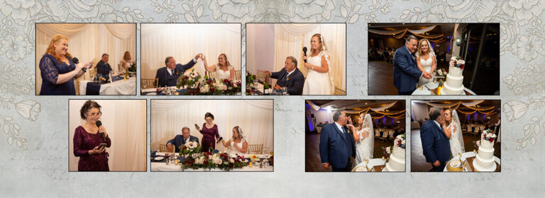 I’m thrilled to present you with this draft of your wedding album! Your album was custom designed by me as a 30 page 14×10 album. The standard paper is a photographic glossy with thick pages. You also have several cover options. Don’t forget to choose the type of cover you would like for your album. You can see the different types of covers and materials by visiting this page. Pick any cover you like, the price is included!
